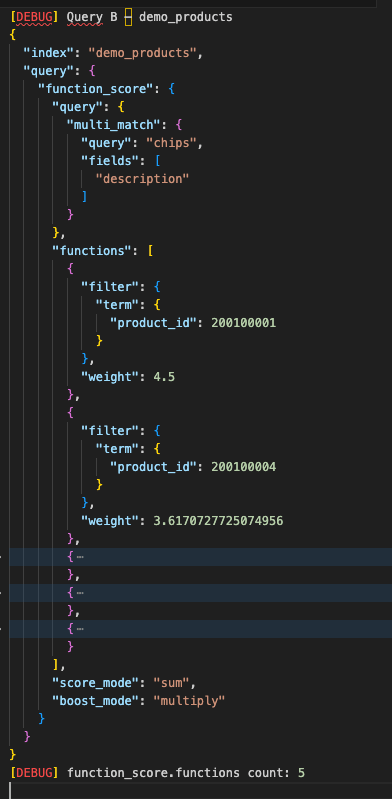 - Search phase — Build a query that includes a function_score query that incorporates the personalised product boosts that we just calculated, so that items previously purchased by this user are pushed to the top of the results. Run the user’s query against the product catalog.